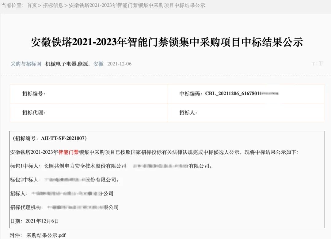 新突破 | mile米乐共创连续中标安徽、江西铁塔智能门禁锁项目